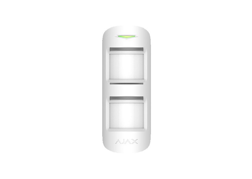 Беспроводной уличный датчик движения Ajax MotionProtect Outdoor позволяет выявить вторжения на охраняемую территорию. Датчик имеет иммунитет к животным ростом до 80 см, не реагирует на покачивание ветвей или листьев.